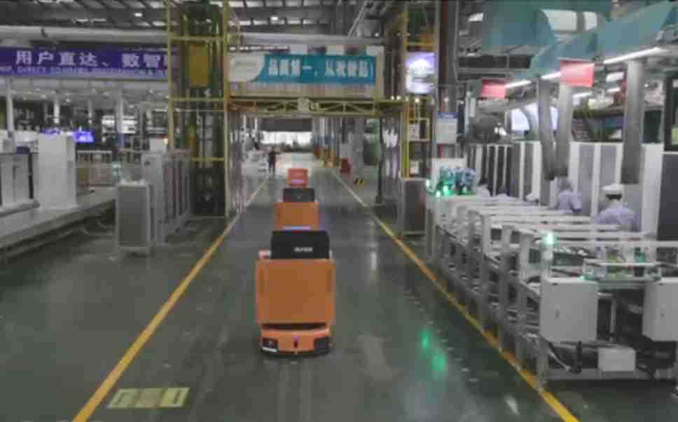 为车载冰箱物流配送打造的智能解决方案,,包含产中物流通过潜伏举升AMR搬运至线边,,,,产后成品物流智能仓储,,流程包含产中物流智能齐套入库,,,,线边安灯叫料AMR智能配送至线边,,,成品入库、、、出库,,,,通过无人堆高车机器人,,,,智能仓储管理替代人工作业管理,,,,实现更高存储、、、、更高效率、、、、更具柔性化的解决方案。。。。